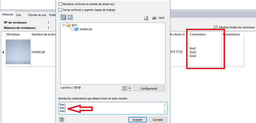 Hasta ahora, al añadir comentarios de varias líneas en cuadros de diálogo como Aplicar check-in o Cambiar estado, los comentarios se mostraban en una sola línea en Vault Client. Los comentarios se mostraban en una sola línea en Vault Client. Con esta actualización, los comentarios de varias líneas se mostrarán de igual forma en Vault Client.