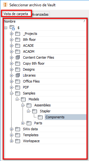 En esta actualización, el cuadro de diálogo Abrir desde Vault ofrece también la vista de carpetas, lo que facilita la navegación de los archivos.