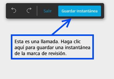 La función Guardar instantánea descarga una copia local de la marca de revisión actual del visor como PNG.