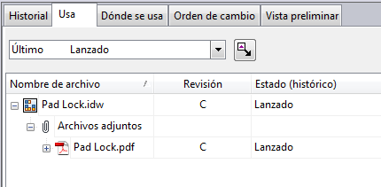 En Vault 2018, los archivos PDF creados para el control de documentos se adjuntan automáticamente a sus archivos de diseño correspondientes. Como resultado, los diseñadores ven todos los archivos PDF en la ficha Usos de Vault Client.