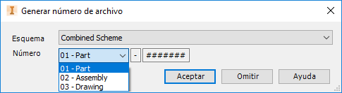 Al definir un esquema de numeración puede crear una descripción en una lista predefinida. Estas descripciones para los esquemas de numeración aparecen cuando se crea un nuevo archivo en Inventor o AutoCAD y se guarda.