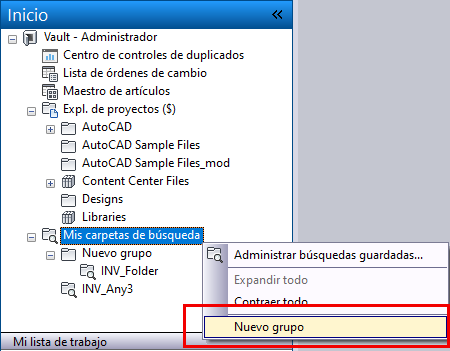 Vault 2021.1 ahora permite agrupar búsquedas guardadas en Vault Client e Inventor.