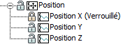 Piste Position X verrouillée ; pistes Position Y et Position Z déverrouillées