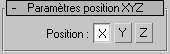 Le contrôleur Position XYZ fractionne les composantes X, Y et Z en trois pistes distinctes de la même manière que le contrôleur de rotation Euler XYZ). Les trois pistes peuvent ainsi être contrôlées individuellement lorsqu'elles sont référencées par les contrôleurs d'expressions.
