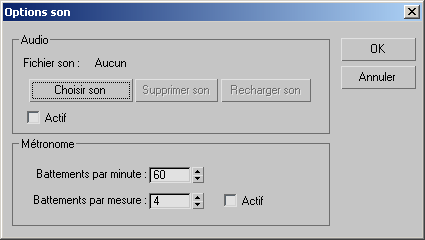 3ds Max ouvre la boîte de dialogue Options de son.