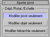 Les outils disponibles dans cette zone dépendent de l'activation ou non des options Affecter seulement pivot et Affecter seulement objet dans la zone Déplacer/Rotation/Echelle (voir ci-dessus). Les outils ne sont pas disponibles lorsque l'option Affecter hiérarchie seule est activée.