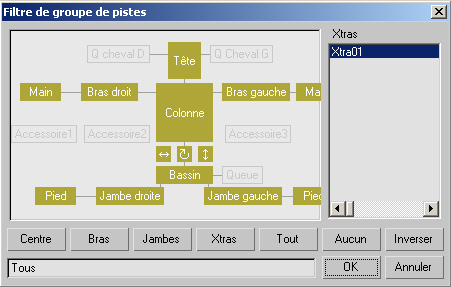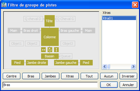 Boîte de dialogue Filtre de groupe de pistes pour objets bipèdes.