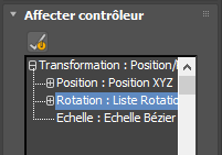 Pour transformer un contrôleur de rotation Euler XYZ (contrôleur de rotation par défaut dans 3ds Max) en contrôleur de rotation TCA :