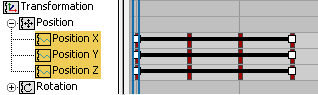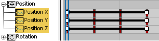 Feuille d'expo). En outre, si nécessaire, développez la hiérarchie des pistes afin que les pistes Position X, Position Y et Position Z soient visibles.