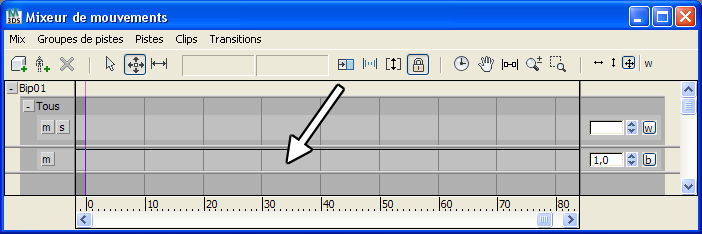 Dans le mixeur, vous pouvez contrôler le degré de compensation de l'équilibre automatique à l'aide d'une piste d'équilibrage. Une piste d'équilibrage est automatiquement créée pour chaque bipède ajouté au mixeur.