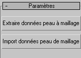 Utilitaires Peau permet la copie de données de peau (poids des enveloppes et des sommets) d'un modèle vers un autre. Pour cela, les données de peau sont intégrées dans une copie du maillage source. Une copie d'objet permet ensuite d'effectuer la correspondance des données sur le maillage cible.