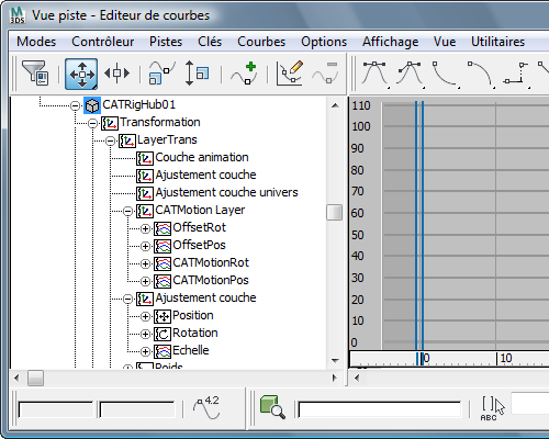 Seules les couches actuellement impliquées dans la pose et l'animation des ossatures CAT sont affichées.