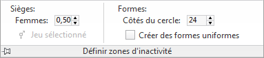 groupe de fonctions Modifier. Pour modifier la distribution des genres parmi les personnes assises sélectionnées, définissez le pourcentage de femmes dans le panneau déroulant Définition zones d'inactivité (voir ci-dessous), puis cliquez sur Jeu sélectionné. Une marque rouge ou bleue sur chaque personne assise indique le sexe et le sens vers lequel la personne est orientée.