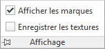 Les paramètres suivants s'affichent dans l'extension du groupe de fonctions Affichage. Pour ouvrir l'extension, cliquez sur le titre du groupe de fonctions Affichage. Pour conserver l'extension ouverte, cliquez sur l'icône en forme de punaise située à gauche du titre.