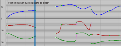 Les courbes de rotation d'un bipède (y compris son centre de gravité) sont toujours définies dans l'espace parent local, qu'elles soient contrôlées en quaternion ou Euler.