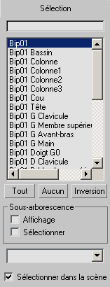 Lorsque cette option est activée, plutôt que de sélectionner les parties du corps du bipède dans la liste, vous pouvez les sélectionner directement dans la fenêtre. Les courbes sont alors immédiatement affichées dans la zone d'affichage des courbes de l'atelier. Cette option est notamment utile lorsque vous ne connaissez pas le nom de la partie du corps que vous désirez sélectionner.