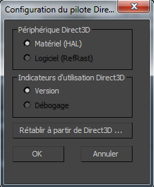 Boîte de dialogue Configuration du pilote Direct3D