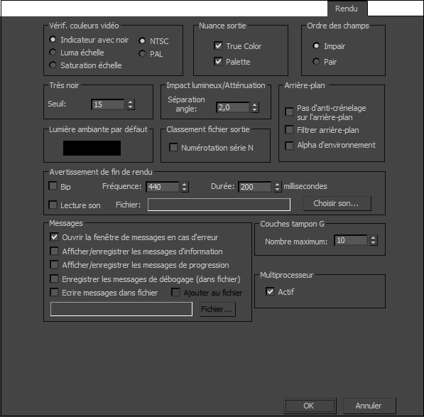 - Chaque fois que le rendu détecte une erreur, il génère un message d'erreur. Lorsque cette option est activée, la fenêtre de messages apparaît et le message d'erreur y est affiché. Cette option est activée par défaut.