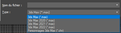 Dans la liste déroulante Enregistrer sous, choisissez une version antérieure de 3ds Max, par exemple "3ds Max 2013 (.max)".