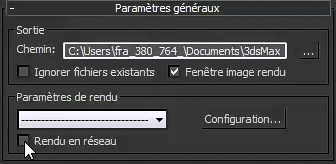 Si vous utilisez la boîte de dialogue Rendu en texture, dans le panneau déroulant Paramètres généraux, activez l'option Rendu en réseau et cliquez sur Rendu dans la partie inférieure de la boîte de dialogue.