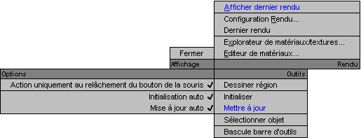 Il affiche des commandes liées aux opérations Rendu interactif.