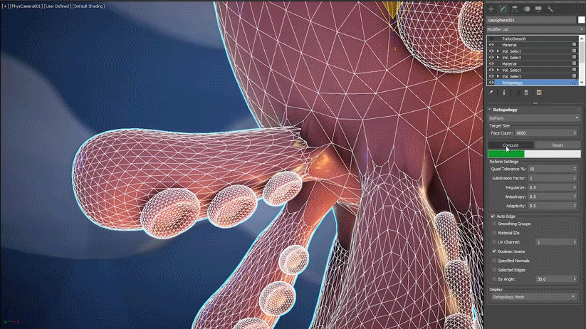 A clean 3D topology is key to achieving professional results. When a model's vertices, edges, and faces are better organized, animations will appear much more fluid and rendering will require less memory. Poorly-optimized meshes can also create visual artifacts as well as problems when applying modifiers. Using the Retopology Tools for 3ds Max, you can quickly correct many common problems introduced by a less than optimal mesh.
