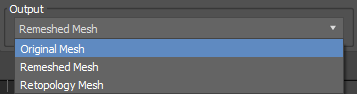 - Output: Selects the mesh to display while adjusting the retopology parameters. You can select between Original Mesh, Remeshed Mesh or Retopology Mesh.