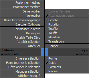 Les deux premiers choix sont des raccourcis vers les boutons de la zone mèches :