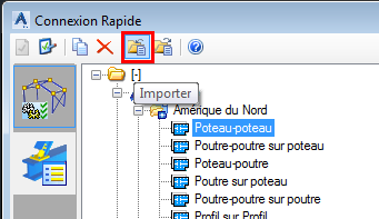 Vous pouvez importer les paramètres sur n'importe quel ordinateur exécutant la même version d'Advance Steel, à l'aide de la commande Importer située sur la barre d'outils de la boîte de dialogue Connexion rapide.