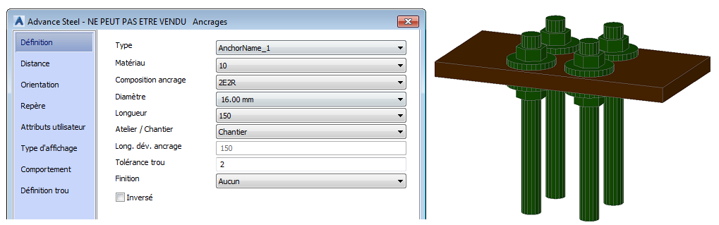 - Après la définition de vos nouveaux types d'écrou et de rondelle, revenez à l'onglet Composition d'AnchorName_1 et ajoutez l'écrou et les rondelles à votre composition de boulon.