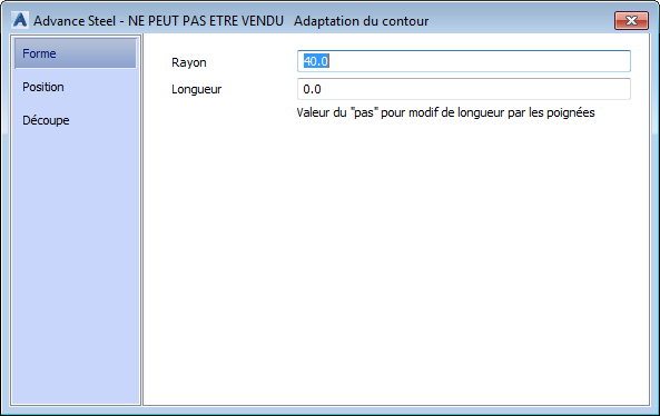 Utilisez les paramètres de cet onglet pour modifier la taille du contour circulaire.