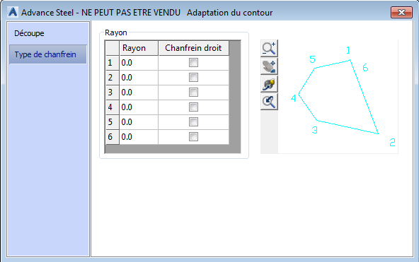 | Rayon | Définit le rayon du chanfrein. |