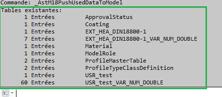 Seuls les paramètres qui sont utilisés dans le modèle Advance Steel correspondant seront stockés dans le fichier DWG et non pas toutes les entrées dans les bases de données d'installation.