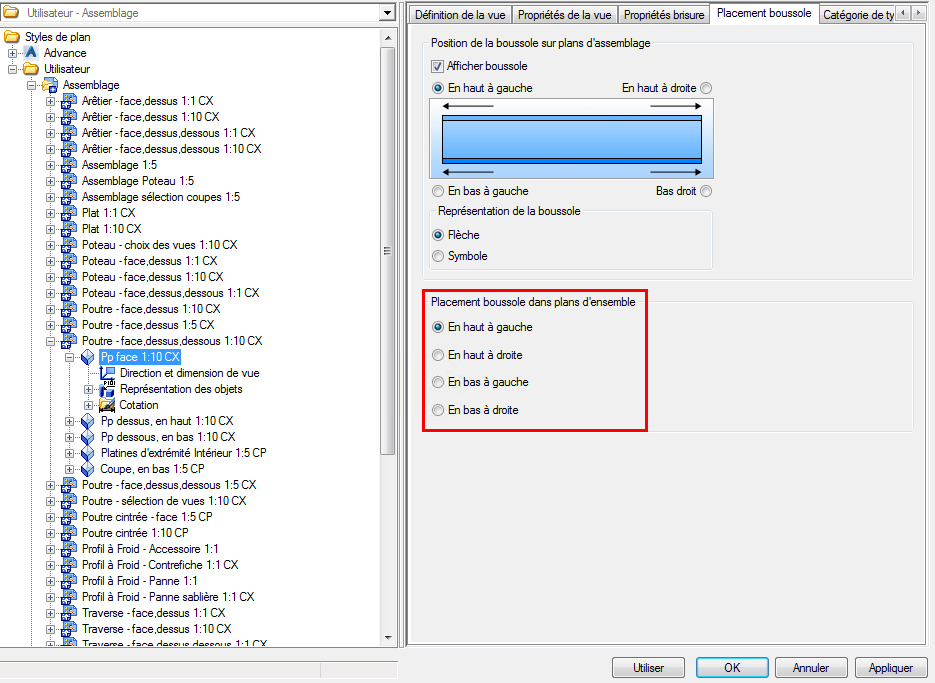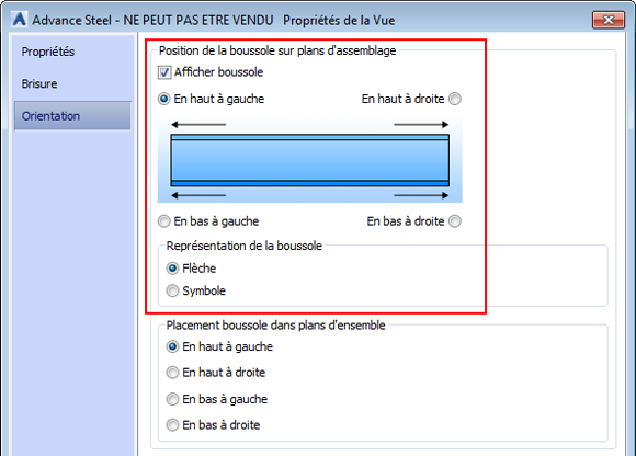 Affichage de la boussole dans un plan d'ensemble