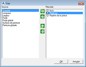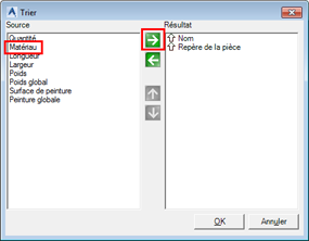 Les critères de tri nouvellement créés permettront de trier des éléments individuels des listes par nom, qualité du matériau (S235 avant S355) et repères. Pour confirmer la sélection, cliquez sur OK.