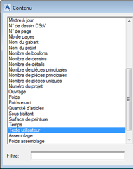 | Emplacement | (Emplacement du champ de texte, dans cet exemple dans l'en-tête de la nomenclature) |