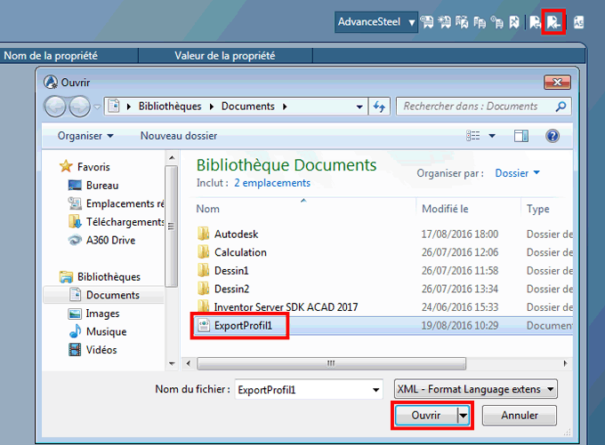 Pour importer le nouveau profil, vous devez utiliser l'option Importer un profil. Vous sélectionnez le fichier XML et vous accédez à l'option Ouvrir, puis vous saisissez le nom du profil importé.