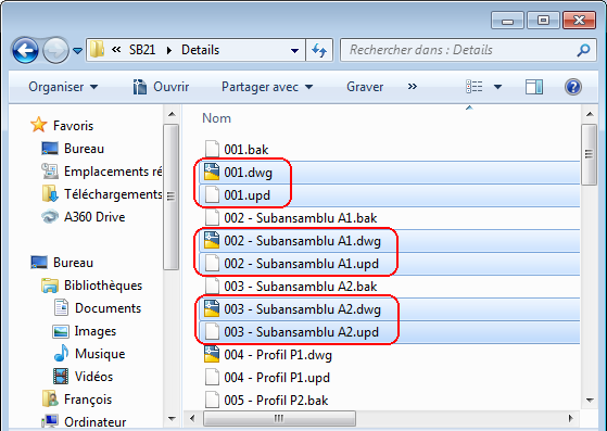 Avant d'effectuer un enregistrement, vous devez copier les fichiers .dwg et .upd vers le dossier Détails, où les détails seront enregistrés.