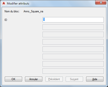 Cette procédure permet de modifier une annotation basée sur un bloc ou de redéfinir ses caractéristiques typographiques ou toute autre propriété dans la boîte de dialogue Modifier les attributs.