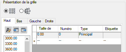 Remarque : La colonne Etiquette est en lecture seule et montre l'étiquette de grille pour la ligne de grille associée. Vous pouvez changer l'étiquetage de la grille dans les Paramètres de bulles ci-dessous.