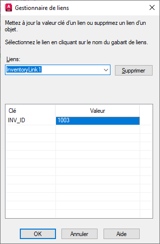 Affiche toutes les valeurs clés définies pour le lien sélectionné. Pour afficher la liste des valeurs correspondant à un champ spécifique, cliquez sur une cellule Valeur et choisissez [...].