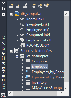 Contient des noeuds pour chacun des dessins ouverts et un noeud Sources de données qui contient toutes les sources de données configurées sur votre système.