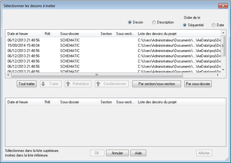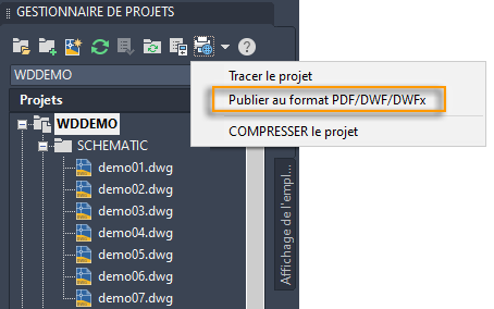 Une fois que vous avez sélectionné l'option Tracer le projet, vous pouvez sélectionner les dessins du projet que vous souhaitez tracer.