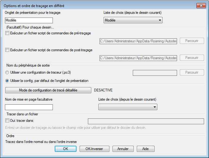 Veillez à sélectionner la présentation que vous souhaitez tracer pour les dessins sélectionnés. Si une mise en page est déjà définie, entrez son nom.