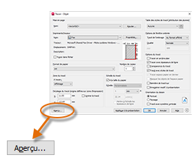 La fenêtre d'aperçu contient une barre d'outils comprenant plusieurs commandes, notamment Tracer et Fermer la fenêtre d'aperçu.