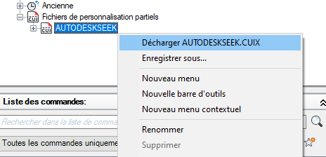 Remarque : Si le fichier CUIx partiel que vous essayez de charger possède le même nom de groupe de personnalisation que le fichier CUIx principal, changez le nom du groupe de personnalisation avant le chargement. Ouvrez le fichier CUIx partiel dans l'éditeur Personnaliser l'interface utilisateur, sélectionnez le nom de groupe de personnalisation et cliquez dessus avec le bouton droit de la souris pour le renommer.