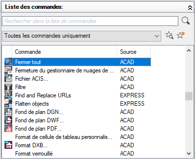 1. Dans le volet Liste des commandes de l'onglet Personnaliser, sélectionnez la commande dont vous souhaitez modifier une étiquette.