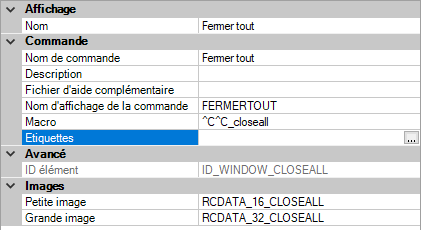 2. Dans le volet Propriétés, cliquez sur le champ Etiquettes et cliquez sur le bouton .