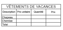 - Cliquez sur chaque cellule et entrez du texte, comme indiqué.