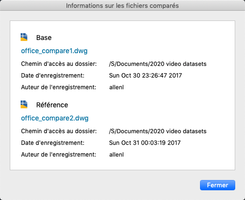 Affiche des informations sur les deux fichiers de dessin comparés.